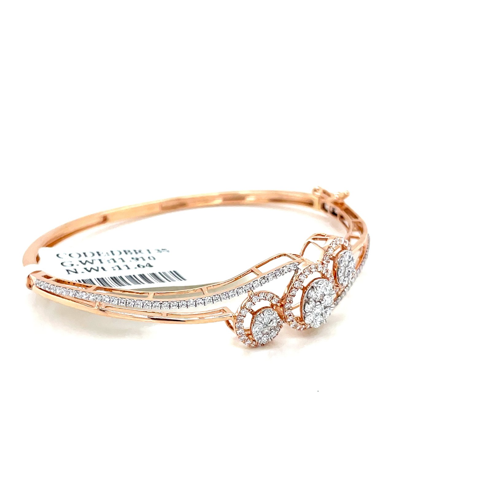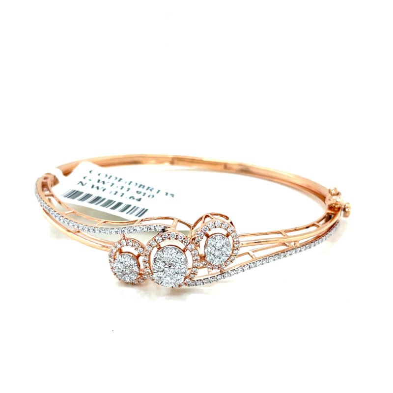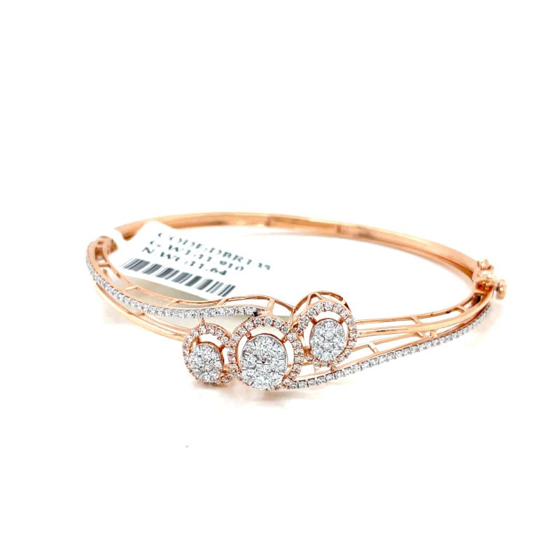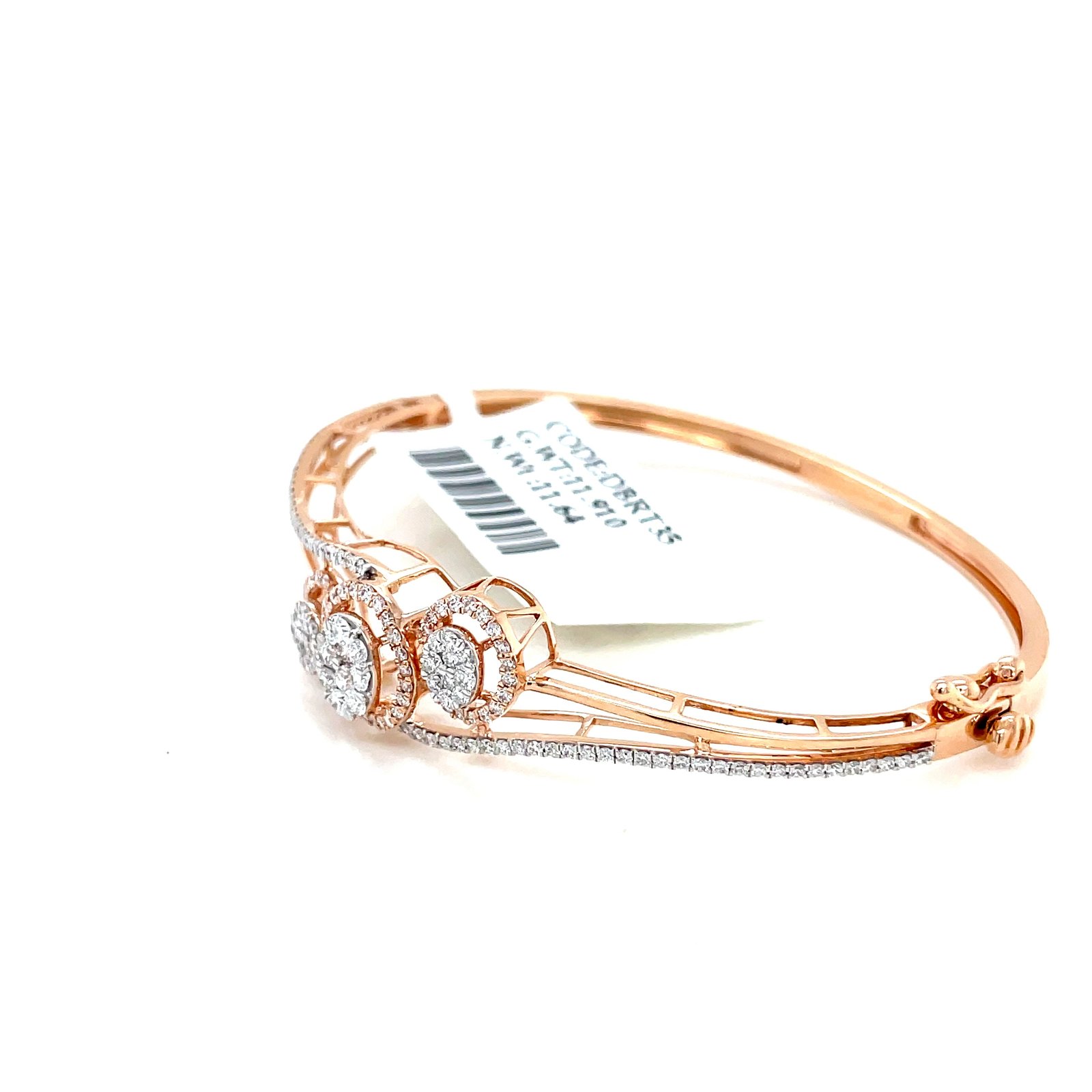 Embrace the elegance of traditional Indian jewelry with this exquisite bangle bracelet, handcrafted in 18K rose gold and adorned with IGI-certified EF VVS natural diamonds. Designed in a classic openable style, this piece blends heritage with modern sophistication, making it a perfect accessory for weddings, festive occasions, and parties.