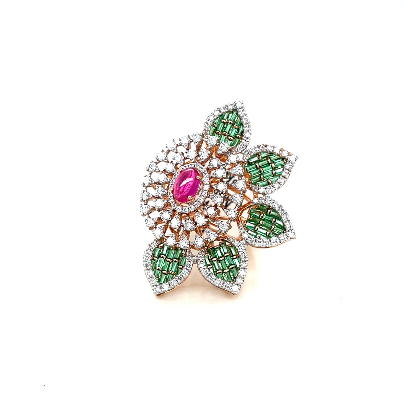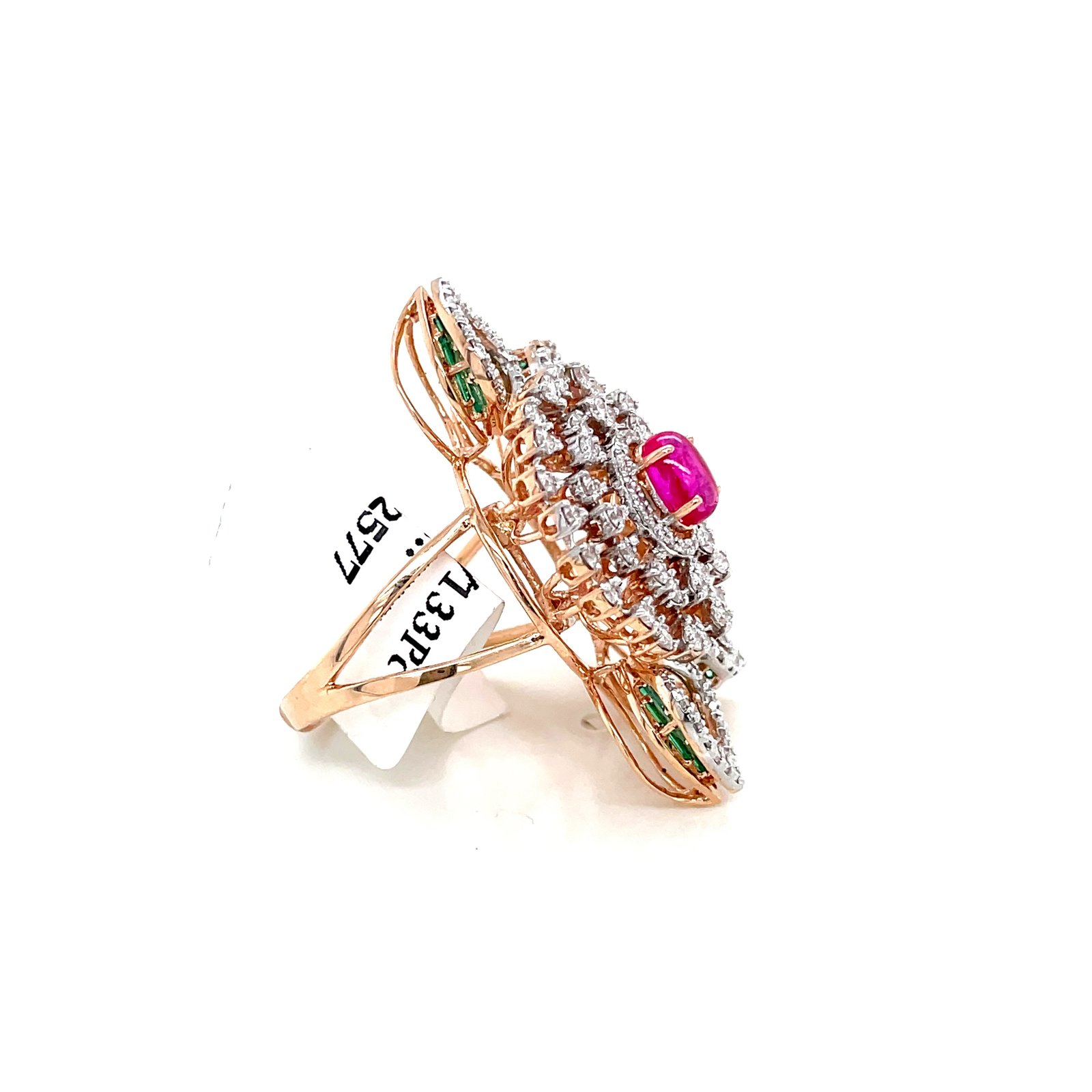 Elevate your jewelry collection with this breathtaking designer cocktail ring, crafted in rich 18K Rose Gold (11.810g). Adorned with 133 natural EF-VVS diamonds totaling 1.23 carats, all IGI certified for unmatched brilliance and quality. The addition of a 1.33 carat semi-precious colorstone adds a vibrant, elegant touch—making it a true show-stopper.