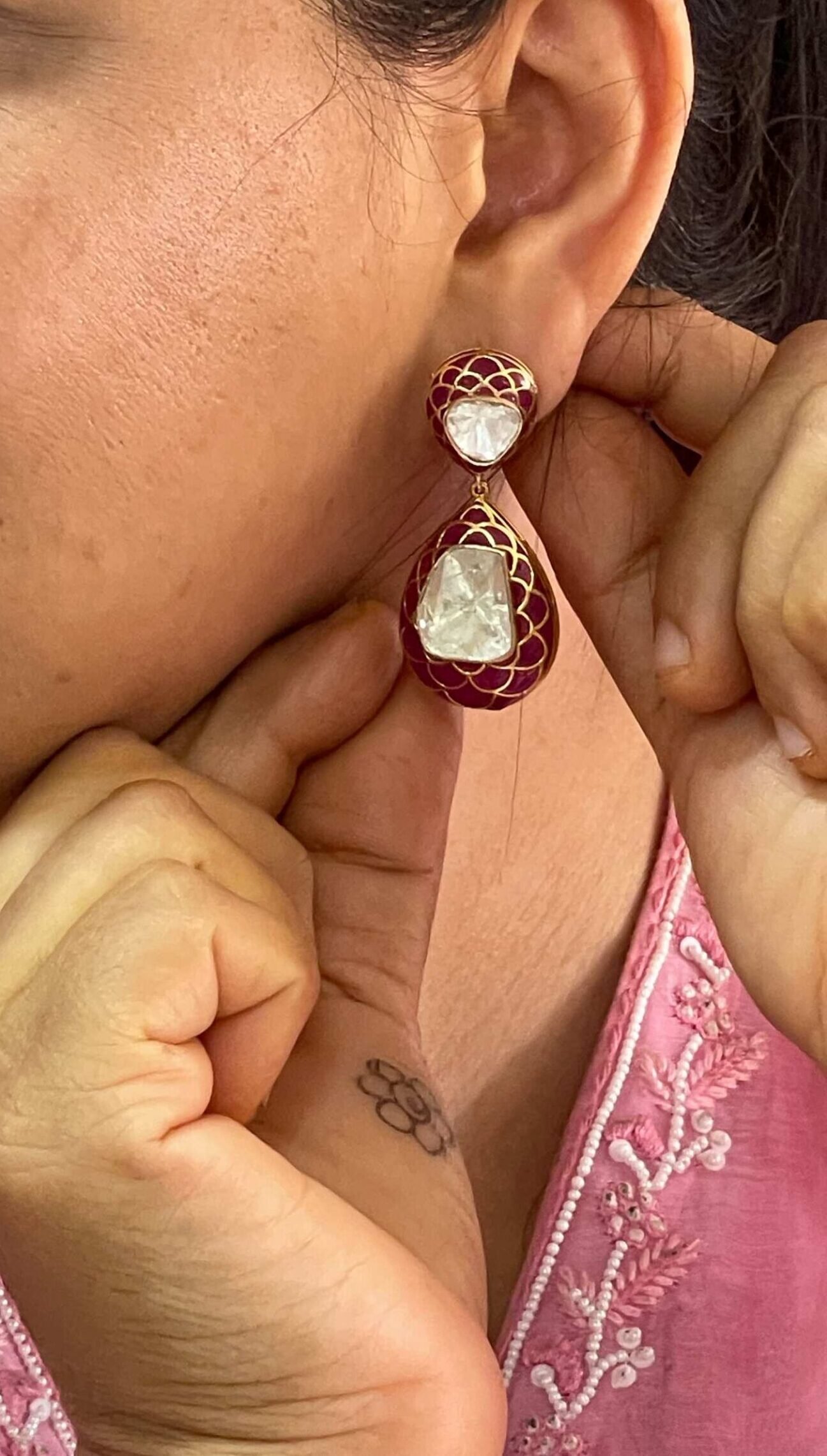 - Stones: Lab-created uncut (Polki-style) diamonds