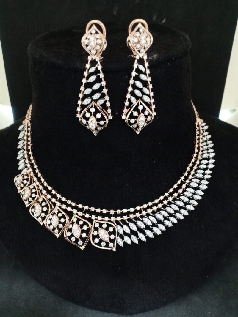 14K Rose Gold Diamond Necklace| Handmade Lightweight Traditional Necklace | Custom Make Necklace .