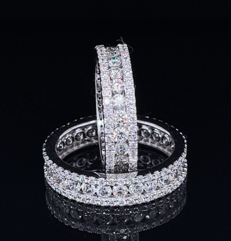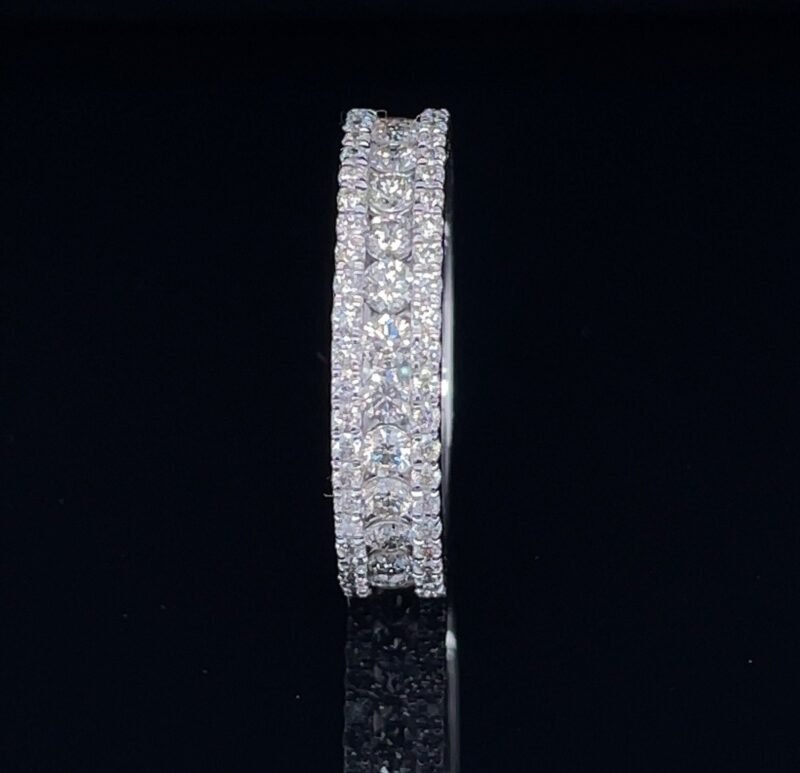 Celebrate everlasting love with this 14K White Gold Diamond Eternity Band, meticulously crafted to symbolize a bond that never ends. Featuring 250 brilliant VS-HI quality diamonds with a total weight of 1.67 carats, this stunning ring shimmers with delicate radiance all around.