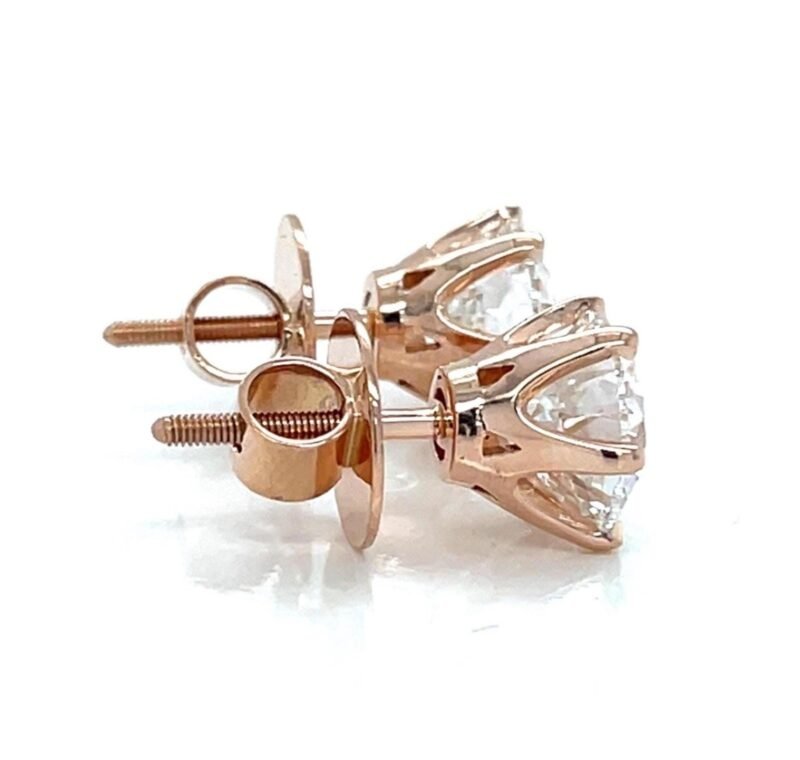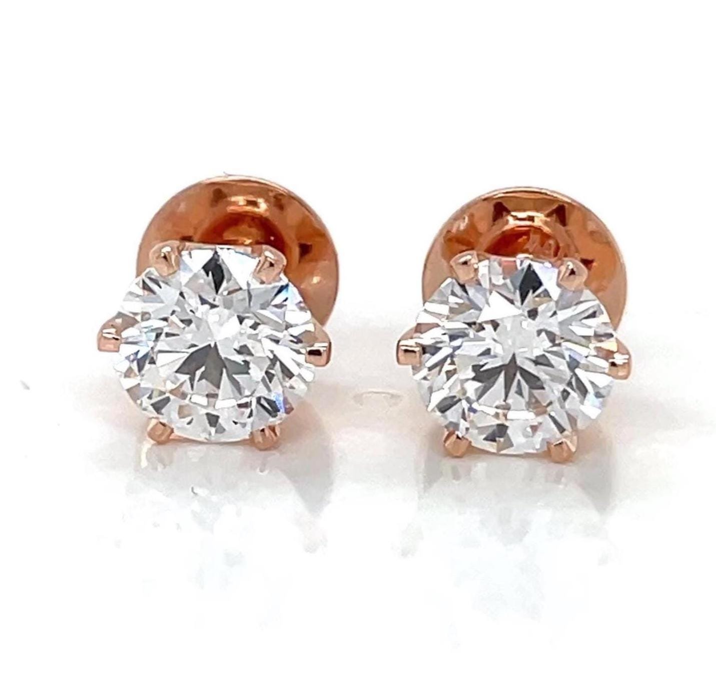 Timeless elegance meets sustainability in these 2CT round lab-grown diamond stud earrings. IGI-certified with EF color and VS1 clarity, set in your choice of 14K white, yellow, or rose gold with a classic martini setting. Lightweight, secure twist-back closure, perfect for everyday luxury or gifting.