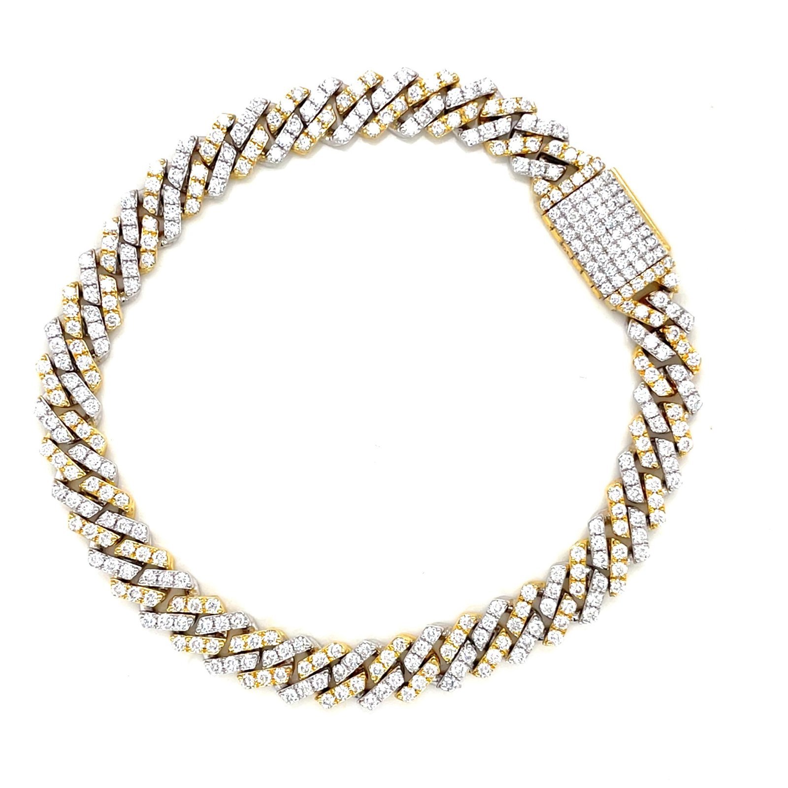 Make a bold style statement with this handcrafted 8mm Cuban Link Bracelet, designed in luxurious 10K yellow and white gold with a shimmering two-tone effect. This piece features a single row of high-quality diamonds—available in natural H/VS or lab-grown EF VVS/VS—for an ultra-iced-out look that commands attention.