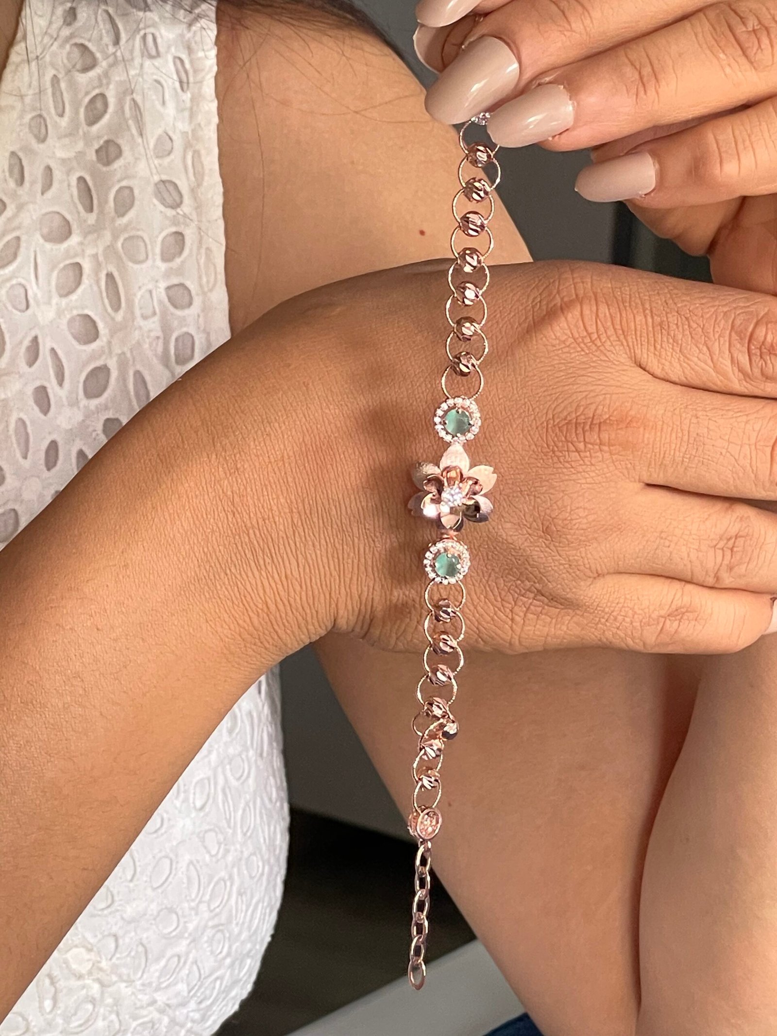 Add a touch of refined charm to your everyday style with this beautifully crafted 925 sterling silver bracelet. Plated in warm rose gold, this lightweight bracelet is designed for comfort and elegance, making it the perfect accessory for both daily wear and special occasions.