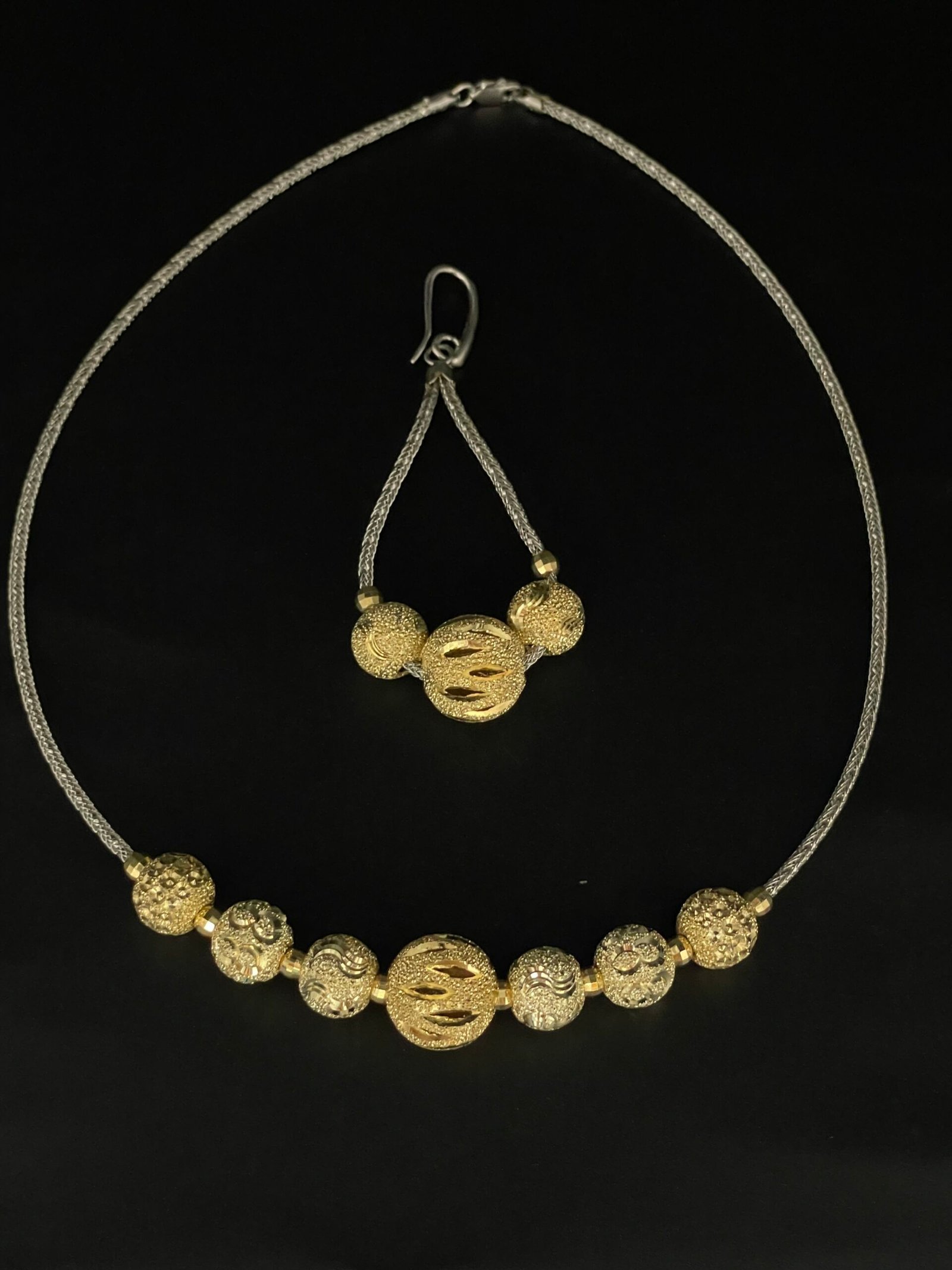 - Matching studs or delicate drop earrings, echoing the necklace’s dual-gold finish