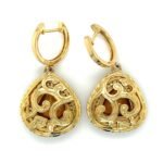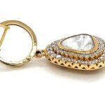 A stunning display of craftsmanship and vintage elegance, these handmade dangle earrings are inspired by the timeless Art Deco aesthetic. Featuring a unique fishtail setting for round lab-created diamonds, bold uncut Polki diamonds, and a beautifully engraved back, these earrings reflect the grandeur of heritage jewelry with a modern twist.