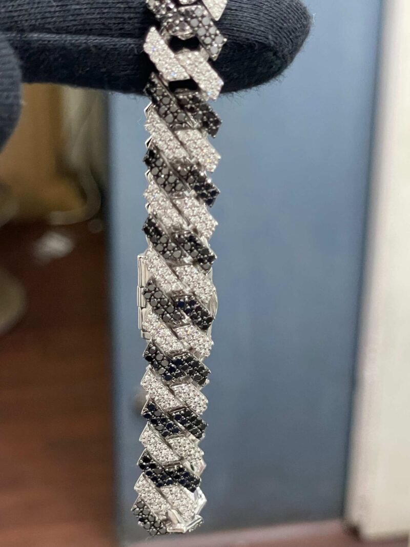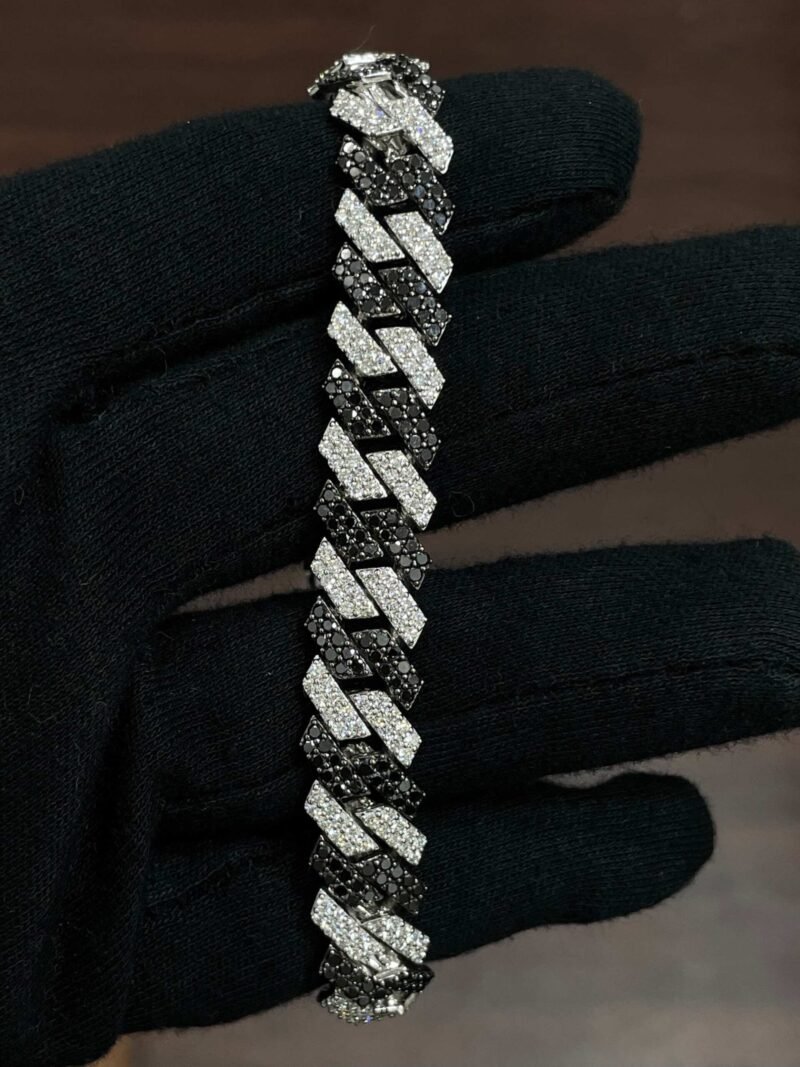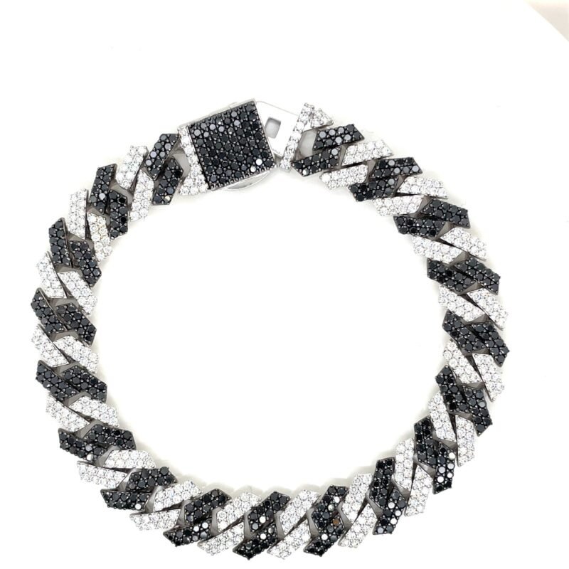 This luxury bracelet is a statement of strength and style ? perfect for special occasions, gifting, or everyday opulence. The alternating shimmer of black and white diamonds adds a unique and powerful aesthetic.
