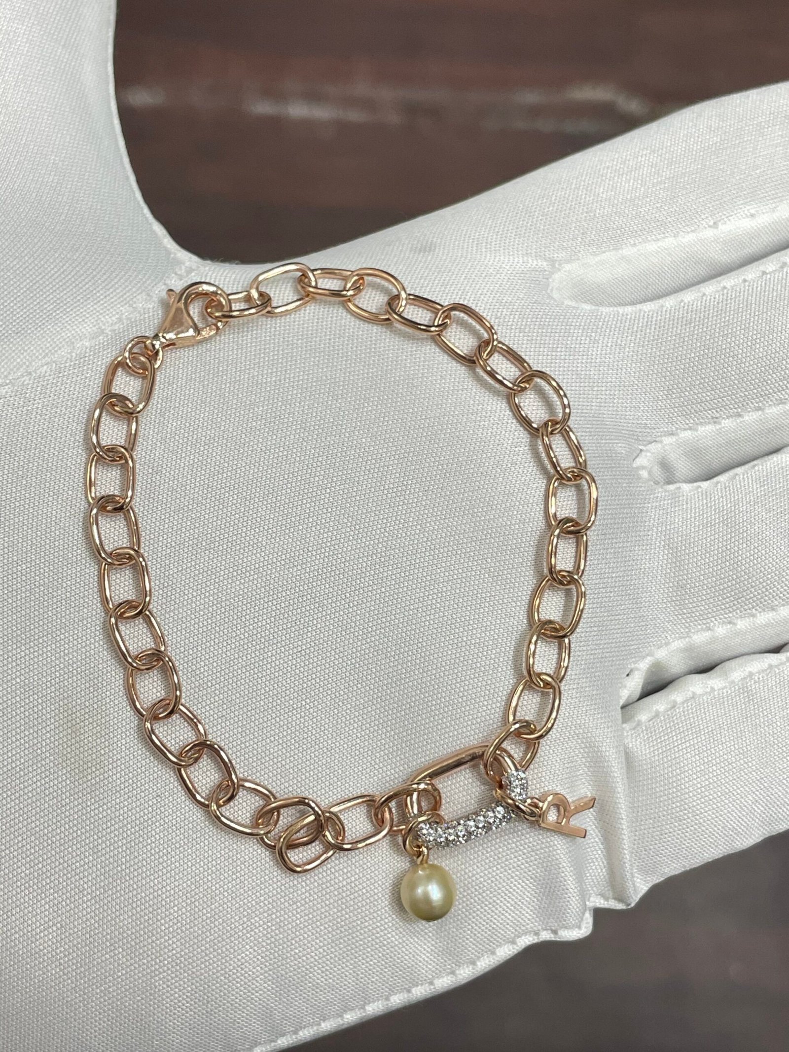 Elevate your everyday style with this customizable 18KT gold bracelet featuring a dainty initial of your choice. Designed for daily elegance, this lightweight bracelet is easy to stack or wear solo for a minimalist look. It features 40 brilliant-cut diamonds (0.30 cts total) and a single 1.20 ct pearl, creating the perfect balance of sparkle and grace.