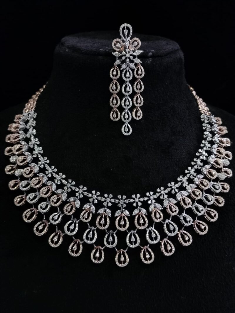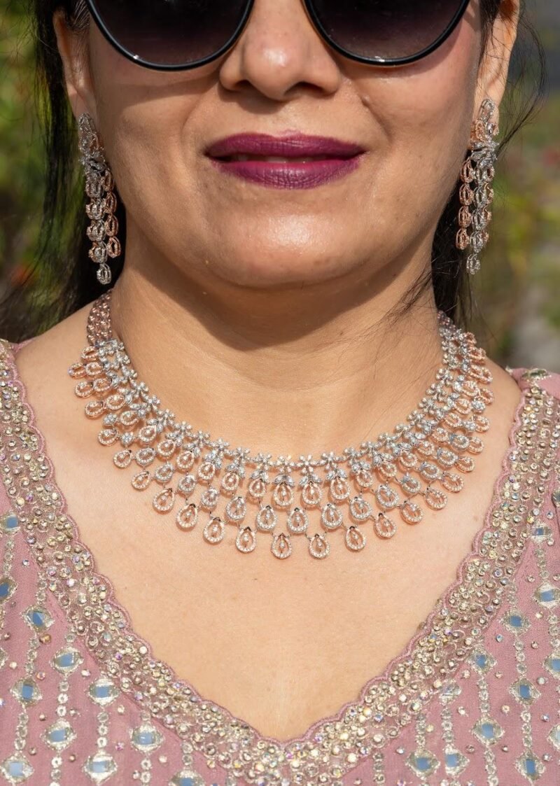 Designed as a custom bridal necklace, this exquisite piece is handmade by master artisans, ensuring the finest diamond setting, polish, and finish. Whether you’re looking for a statement wedding necklace or a one-of-a-kind heirloom, we offer full customization based on your preferences and budget.