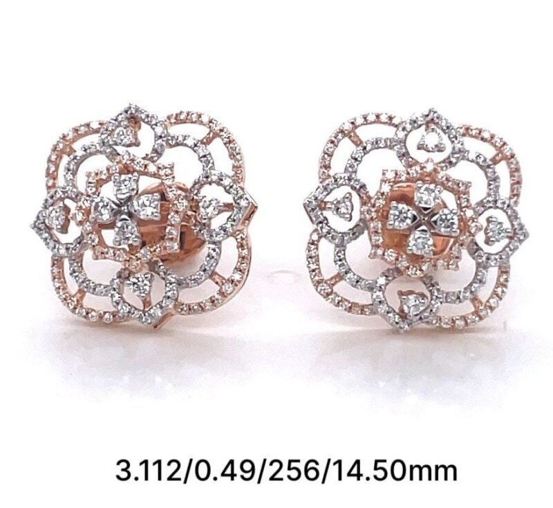 Elevate your elegance with these exquisite 14K Rose Gold Diamond Stud Earrings, expertly crafted with a dazzling micro pavé setting. Lightweight and graceful, these 14.5 mm studs feature 256 brilliant-cut EF-VS quality natural diamonds, offering a radiant sparkle perfect for daily wear or special occasions.