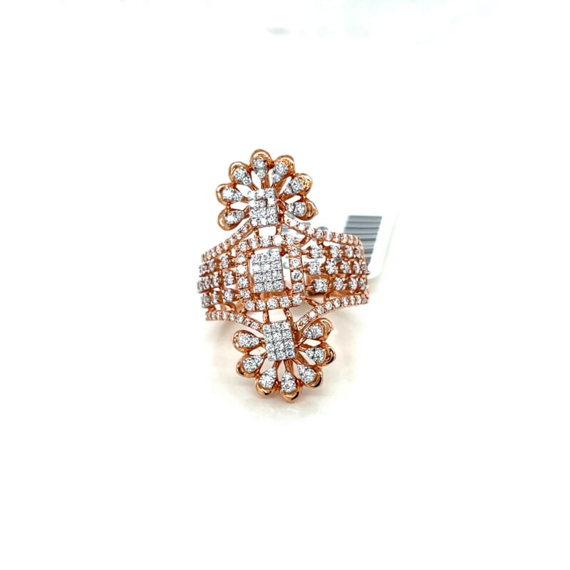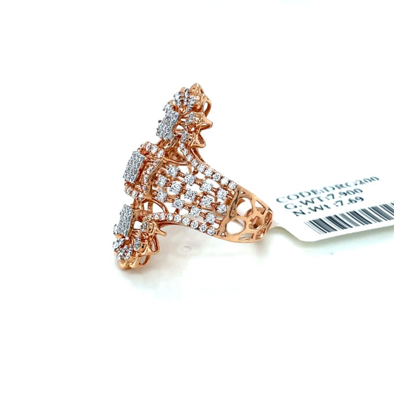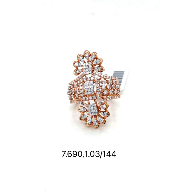 This stunning cocktail ring is crafted from 14K rose gold (7.690 grams) and features 144 sparkling diamonds totaling 1.03 carats. Custom-made with your choice of natural or lab-grown diamonds, perfect for party wear or gifting.