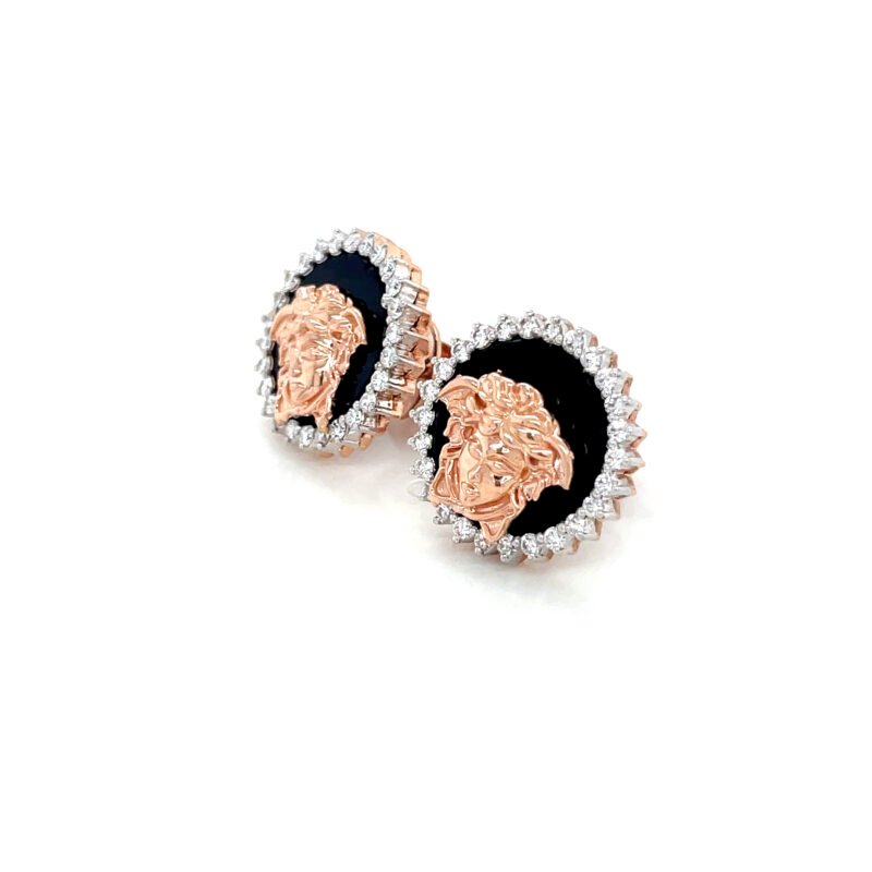 These stunning diamond stud earrings are handcrafted in 18K Rose Gold, featuring a pave setting of EF-VVS clarity diamonds that total 0.44 carats. Designed with a secure twisting-style screw back, these 13.5mm earrings make a perfect gift or personal treasure. Every piece is IGI Certified for authenticity and brilliance.