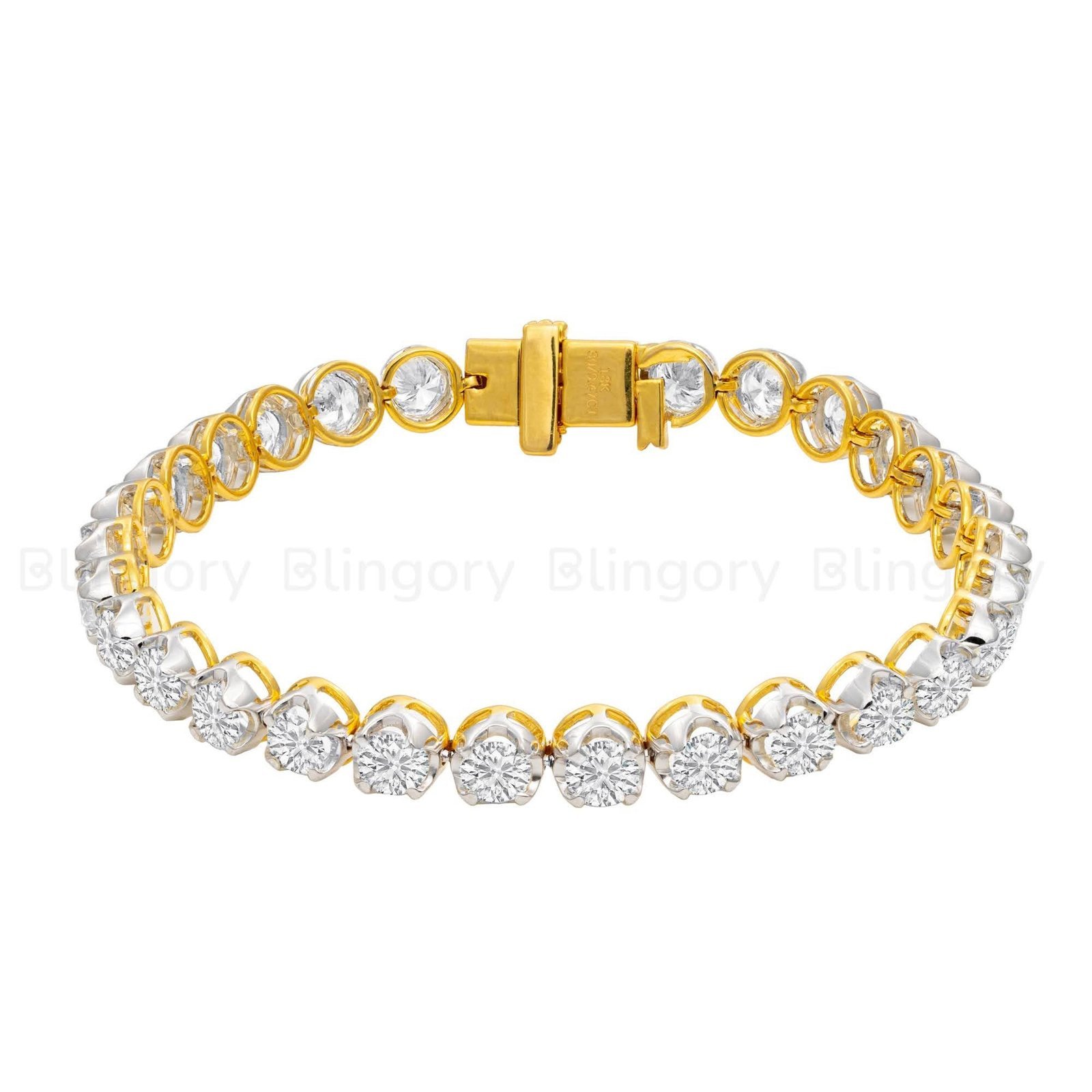 Elevate your style with this elegant tennis bracelet, crafted in solid 14K yellow gold and adorned with 38 sparkling diamonds (15 pointers each), totaling 5.80 carats. Available in natural IJ/VS diamonds or EF/VVS lab-grown diamonds, this lightweight yet luxurious piece is perfect for everyday elegance or special occasions.