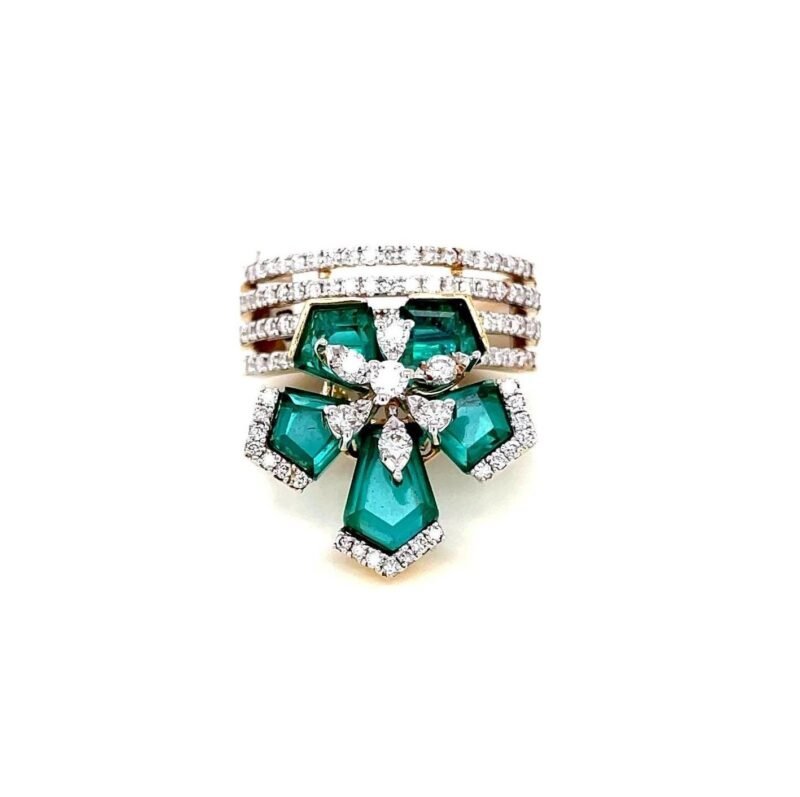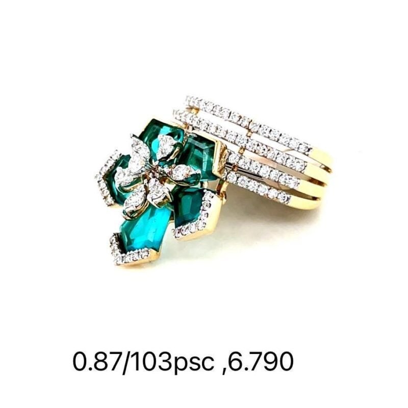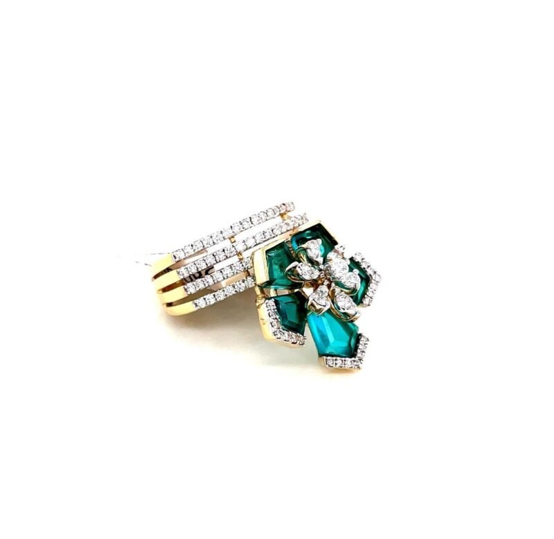 Designed exclusively for special occasions, this ring stands out as a statement of sophistication and grace. The intricate design is tailored to highlight the natural beauty of the diamonds and the colorful stones, creating a harmonious and eye-catching piece. Perfect for marking significant milestones or celebrating cherished moments, this ring is the ideal accessory for those who appreciate fine craftsmanship and unique design.