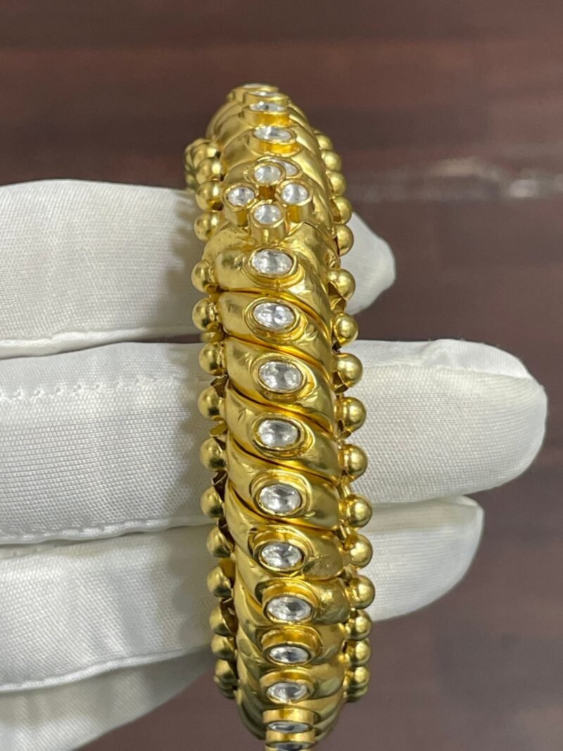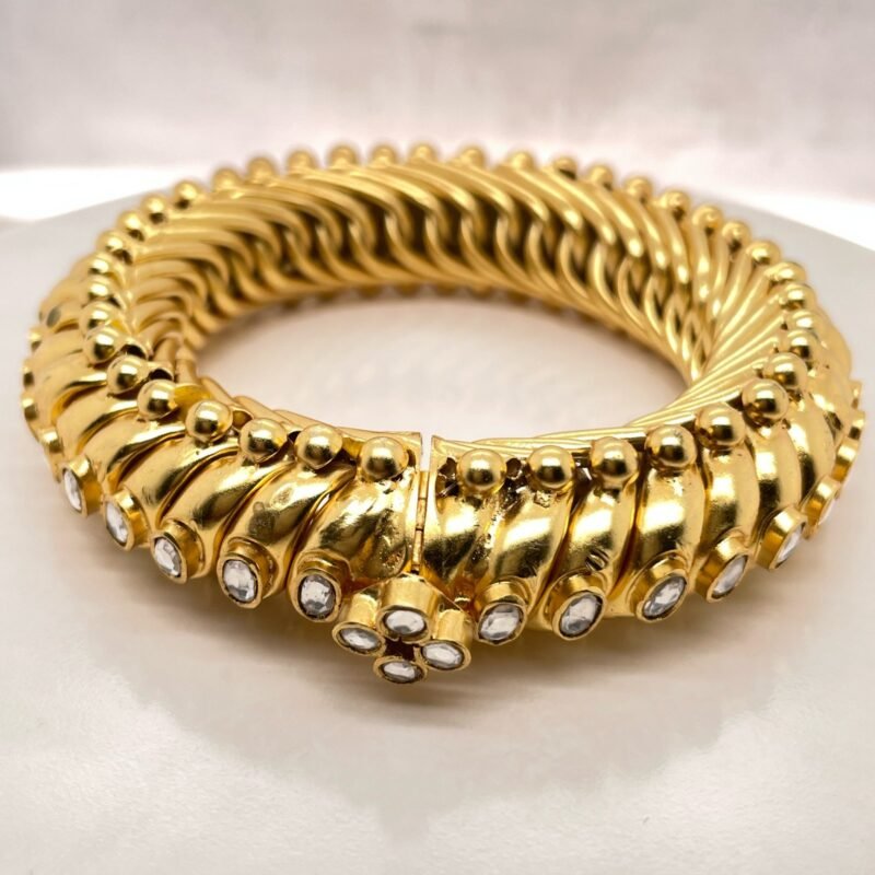 Structure: Openable cuff (with hook mechanism) shaped in flexible folds (“sutlada”), characteristic of traditional Shindeshahi-style bangles