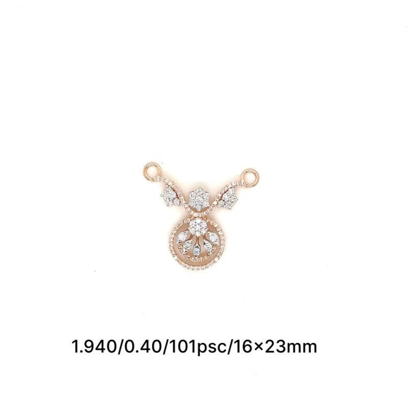 Celebrate tradition with a modern twist through this handcrafted diamond mangalsutra – designed for elegance, comfort, and daily wear. Set in 14K rose gold (1.940 grams) and adorned with 101 natural diamonds totaling 0.40 carats (EF/VS quality), this lightweight pendant captures the essence of Indian culture in a sleek, minimalist style.