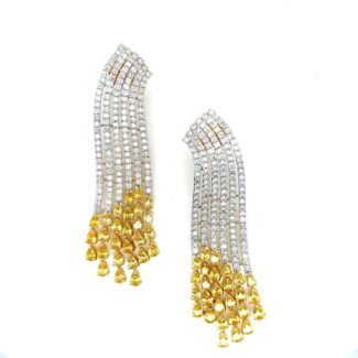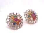 Elevate your jewelry collection with these handmade 14K Yellow & White Gold Navgrah earrings featuring: