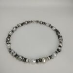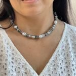 This stunning necklace features 250 carats of authentic Japan Keshi pearls, known for their organic shapes and natural luster. The unshaped pearls come in a rich mix of earthy tones — brown, grey, and off-white — giving it a raw, artistic, and timeless appeal.