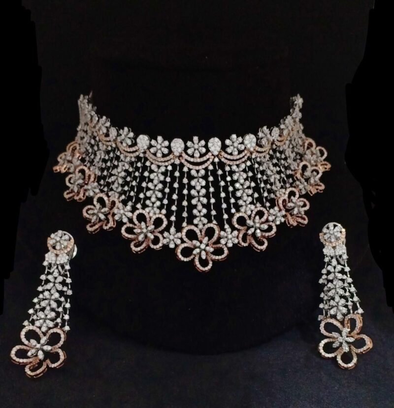 rose gold diamond bridal necklace, 14k rose gold wedding necklace, bridal diamond necklace, diamond necklace for bride, rose gold wedding jewelry, custom bridal necklace, natural diamond bridal jewelry, lab diamond wedding necklace, elegant bridal necklace, rose gold choker necklace, diamond wedding necklace, luxury bridal necklace, EF VS lab diamond necklace, IJ VS natural diamond necklace, Indian bridal jewelry, reception diamond necklace, modern wedding necklace, statement bridal jewelry, handcrafted diamond necklace, 14k rose gold jewelry