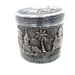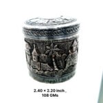 Bring home a timeless treasure with this beautifully handcrafted Kutch Silver Box, weighing 108 grams and sized at 2.40 x 2.20 inches. This rare collectible features detailed engraving of old-day houses and trees, showcasing the rich scenic artistry of Kutch craftsmanship.
