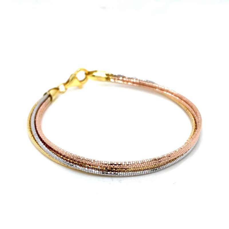 Add a touch of European charm with this beautifully crafted Italian silver bracelet, made from 925 sterling silver and finished with luxurious tri-color rhodium plating (yellow, white, and rose). Lightweight and elegant, it’s perfect for everyday wear or gifting.