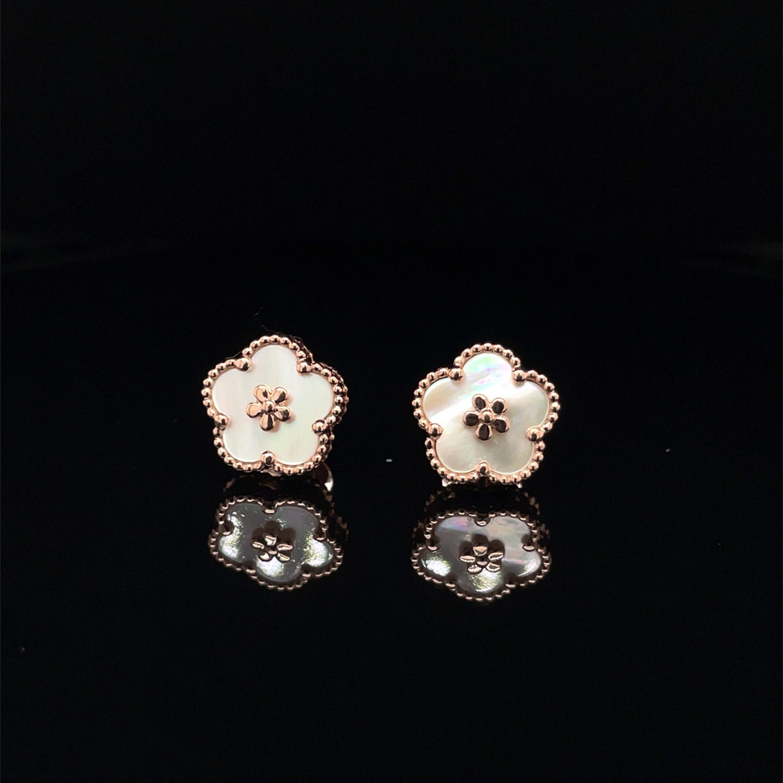 Custom-Made Van Cleef Style Rose Gold Flower Earrings
