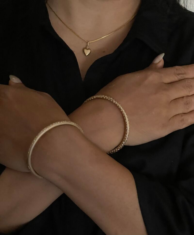 Wear it alone for quiet elegance, or stack it with other bangles to create a soft, melodic harmony of gold.