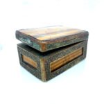 This is a beautiful vintage pill box in some metal studded with tiger eye stone on the lid.