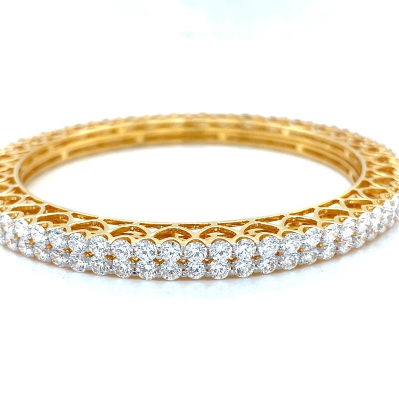 Celebrate tradition and sophistication with these exquisite Traditional Indian Wedding Diamond Bangles, designed to grace your wrists with timeless charm. Handcrafted with care, each bangle is meticulously made in 10K gold and embellished with 10-pointer natural or lab diamonds, reflecting luxurious craftsmanship and bridal grandeur.