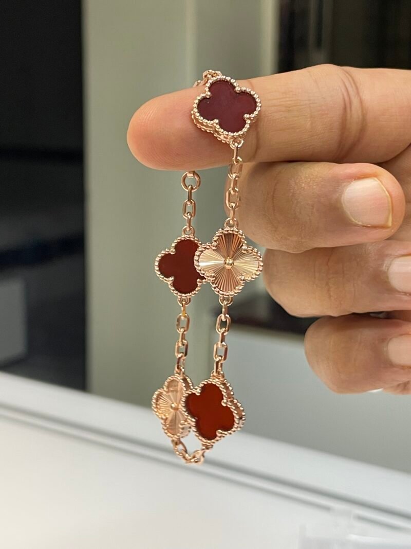 Van Cleef Style Alhambra Bracelet – 18K Gold with Carnelian Motif (Custom Made)
