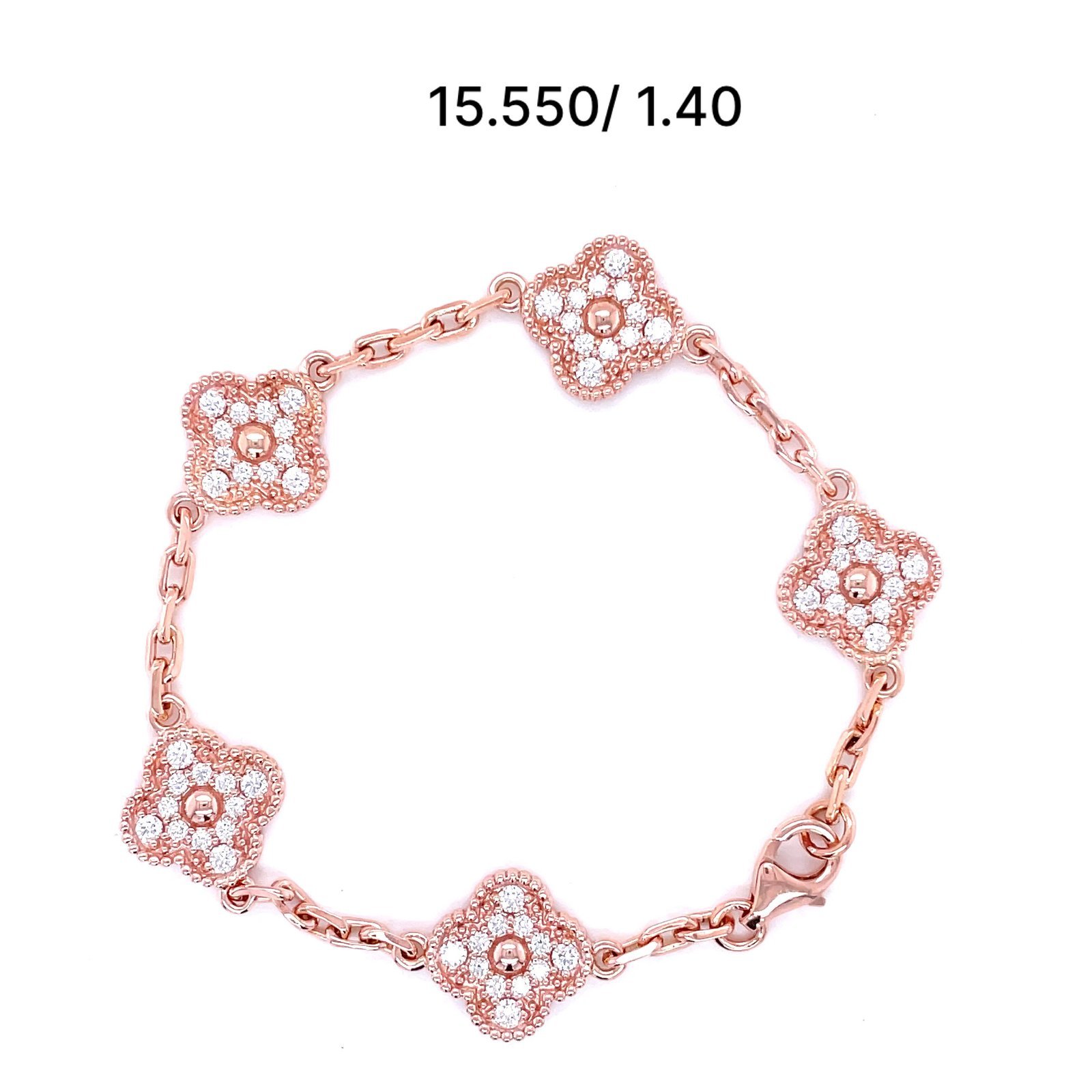 Elevate your jewelry collection with this stunning Alhambra-style clover bracelet, handcrafted in luxurious 18K rose gold and adorned with full pavé diamond motifs. Inspired by timeless Van Cleef design, this bracelet is a sparkling symbol of elegance, luck, and refined craftsmanship.