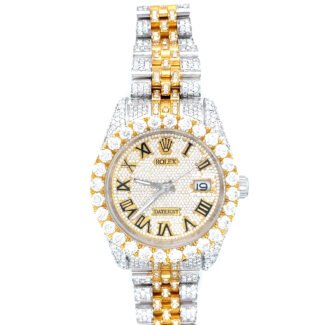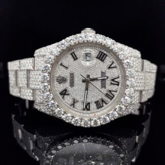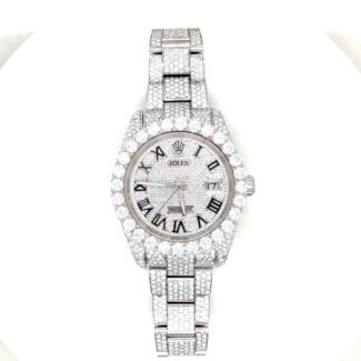 - Setting: Full pave setting (case, bezel, bracelet, and dial)