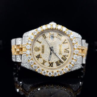 Turn every moment into a statement with this fully iced-out moissanite diamond watch, crafted in premium stainless steel and set with brilliant-cut moissanite stones across the bezel, dial, and bracelet. Each stone is hand-set to perfection, giving you the same fire, brilliance, and luxury look as natural diamonds — at a fraction of the price.